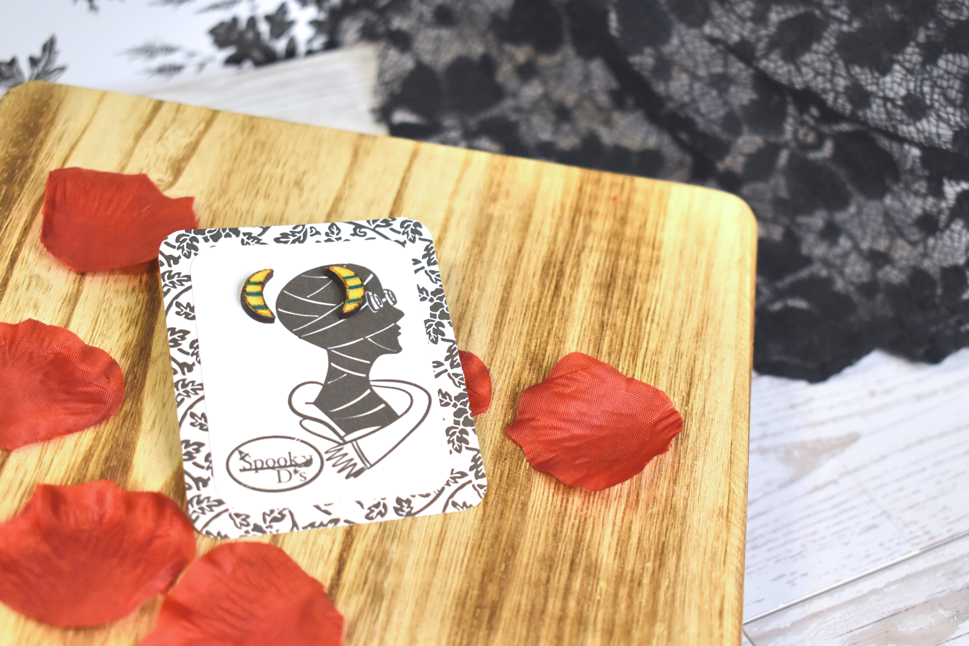 Each piece in the collection is laser cut from lightweight, durable wood and finished with engraved details and metallic accents. To keep your jewelry looking its best, avoid wearing it in water or exposing it to excessive moisture. If your piece does get damp, gently dry it with a soft, damp cloth and allow it to fully air dry before storing. Treat it with care, and it will keep its spooky sparkle for seasons to come.
